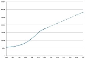 Delaware County Historical and Projected Population, 1980-2040